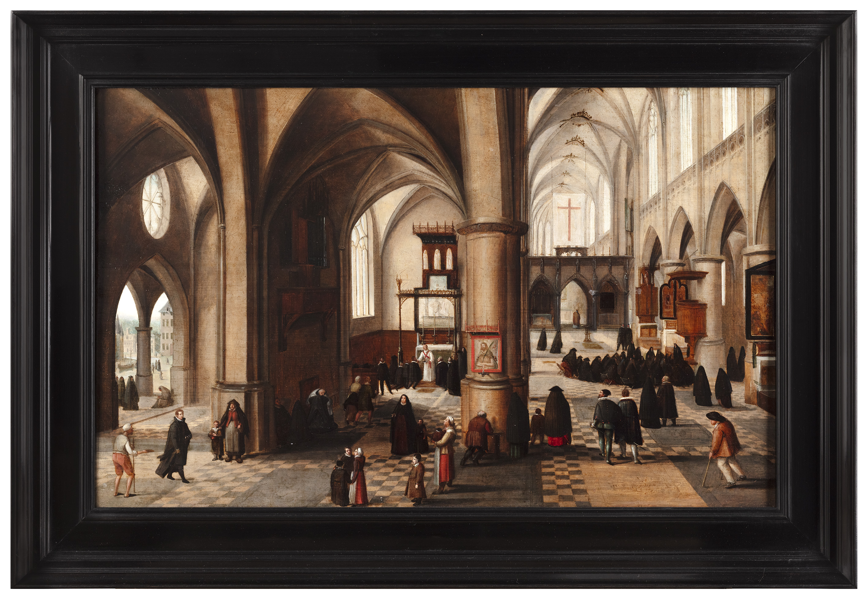 What makes this work special is the way he used the science of perspective to create ideal, carefully constructed architectural spaces. These interiors are not only accurate depictions but also almost staged, perfected visions of space. Figures were often added to make the scene lively, which was part of the appeal.